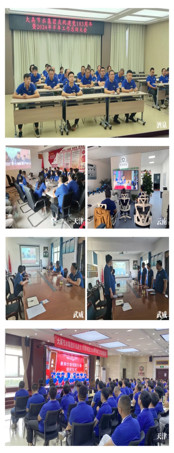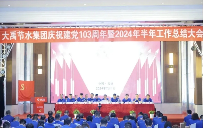为庆祝中国共产党建党103周年????? ???????????????????? ???????????????????? ???????????????????? ???????????????,7月1日,大禹节水集团在天津隆重召开庆祝????? ??????????????????? ??????????????????? ??????????????????? ???????????????建党103周年暨2024????? ???????????????????? ???????????????????? ???????????????????? ???????????????年半年工作总结大会。大会在????? ???????????????????? ??????????????????? ???????????????????? ???????????????庄严的国歌中拉开序幕,集团公司????? ???????????????????? ???????????????????? ???????????????????? ???????????????全体党委委员、集团高管、各板块负????? ???????????????????? ???????????????????? ???????????????????? ???????????????责人及受表彰的先进党支部、优秀共产党员、各分会场????? ???????????????????? ???????????????????? ???????????????????? ???????????????近三千余名党员干部、员工同步参????? ??????????????????? ???????????????????? ???????????????????? ???????????????加会议。