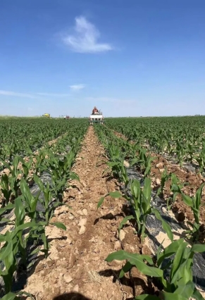 宁夏同心基地目前以玉米为????? ???????????????????? ???????????????????? ???????????????????? ???????????????主要种植作物,部分土地采用大豆套种玉米????? ???????????????????? ???????????????????? ???????????????????? ???????????????的模式。在籽粒玉米播种过程中,使????? ???????????????????? ???????????????????? ???????????????????? ???????????????用气吸式精量播种机,能够????? ???????????????????? ???????????????????? ??????????????????? ??????????????一次性完成开沟、施肥、播种、铺设滴灌带、覆????? ???????????????????? ???????????????????? ??????????????????? ???????????????土、镇压等多道工序,实现种肥同下????? ???????????????????? ???????????????????? ???????????????????? ???????????????,确保单穴单粒的播种效果,显著提????? ???????????????????? ???????????????????? ???????????????????? ???????????????升作业精度和效率。2024????? ???????????????????? ???????????????????? ???????????????????? ???????????????年5月,所有作物的播种工作已全面完成,且????? ??????????????????? ???????????????????? ???????????????????? ???????????????作物生长态势表现良好。经过对现有作物????? ???????????????????? ???????????????????? ???????????????????? ??????????????生长状况的综合分析,预测每亩地产量将????? ???????????????????? ???????????????????? ???????????????????? ???????????????较传统种植方式增产约300斤左右。