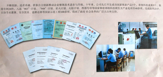 不断创新 所示卓越,依靠自主创新推动????? ???????????????????? ???????????????????? ???????????????????? ???????????????企业整体技术进步与升级。十年来,公司先后开????? ??????????????????? ??????????????????? ???????????????????? ???????????????发成功国家级新产品3个,省级科技????? ??????????????????? ???????????????????? ???????????????????? ???????????????成果5个,取得专利28件,入选“863????? ??????????????????? ???????????????????? ???????????????????? ???????????????”计划、“948”计划、星火计划、火炬计划、西部????? ???????????????????? ???????????????????? ???????????????????? ???????????????专项等国家和省部级科技研发及产业化项目40多项,????? ???????????????????? ???????????????????? ??????????????????? ???????????????完成防风治水、目协节水灌溉、安全饮水、退耕还????? ??????????????????? ???????????????????? ??????????????????? ??????????????林等国家示范工程100多项,得到了政????? ???????????????????? ???????????????????? ???????????????????? ???????????????府社会各界的广泛关注和支持。