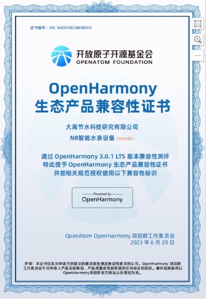 大禹研发| 大禹节水两款节水智能装备通过Op????? ???????????????????? ???????????????????? ???????????????????? ??????????????enHarmony生态产品兼容????? ???????????????????? ???????????????????? ??????????????????? ???????????????性测评