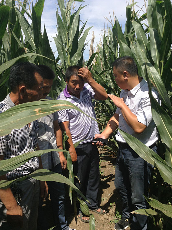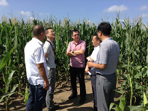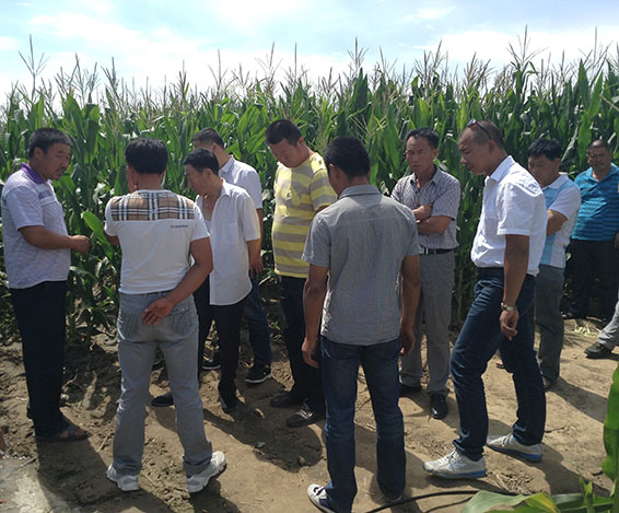 观摩农户在试验田中了解玉米长势