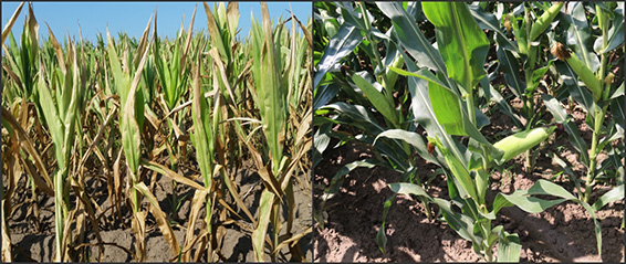 受旱玉米和大禹节水集团试验田玉米对比